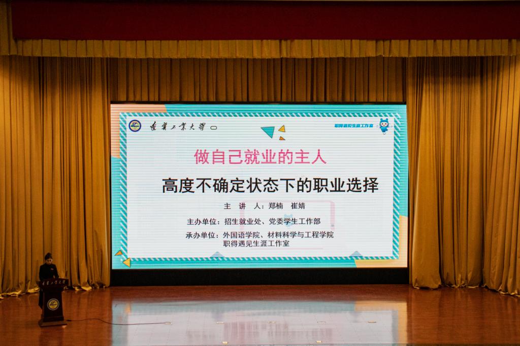 4月24日晚,我校在图书馆报告厅成功举办“职得相约”讲堂第四期专题讲座。本次讲座由学校招生就业处、党委学生工作部主办,外国语学院、职得遇见生涯工作室(辽宁省辅导员名师工作室)承办,邀请大湾区执一咨询创始人郑楠、崔婧以《做自己就业的主人——高度不确定下的职业选择》为题作专题报告。职得遇见生涯工作室主持人、外国语学院党委副书记兼副院长康昕,电信学院党委副书记兼副院长杜君,全校500余名师生参加讲座。