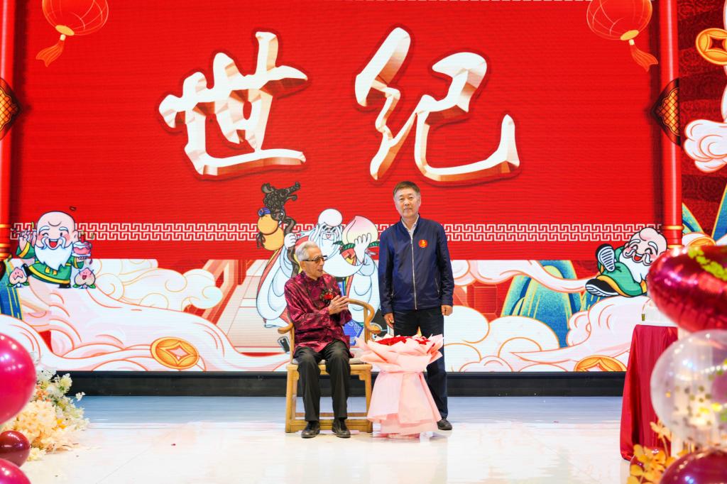 寿宴中,大家与王秀水老人及其家人欢聚一堂,张启俭、张广安代表学校党委为老人送上了寿桃和鲜花,祝福老人福寿绵长。张启俭表示,对于学校来说,百岁老人是一本见证了学校历史变迁和时代变革的编年史,是学校的宝贵财富,学校也会永远记得他们为推进学校建设发展做出的重要贡献。