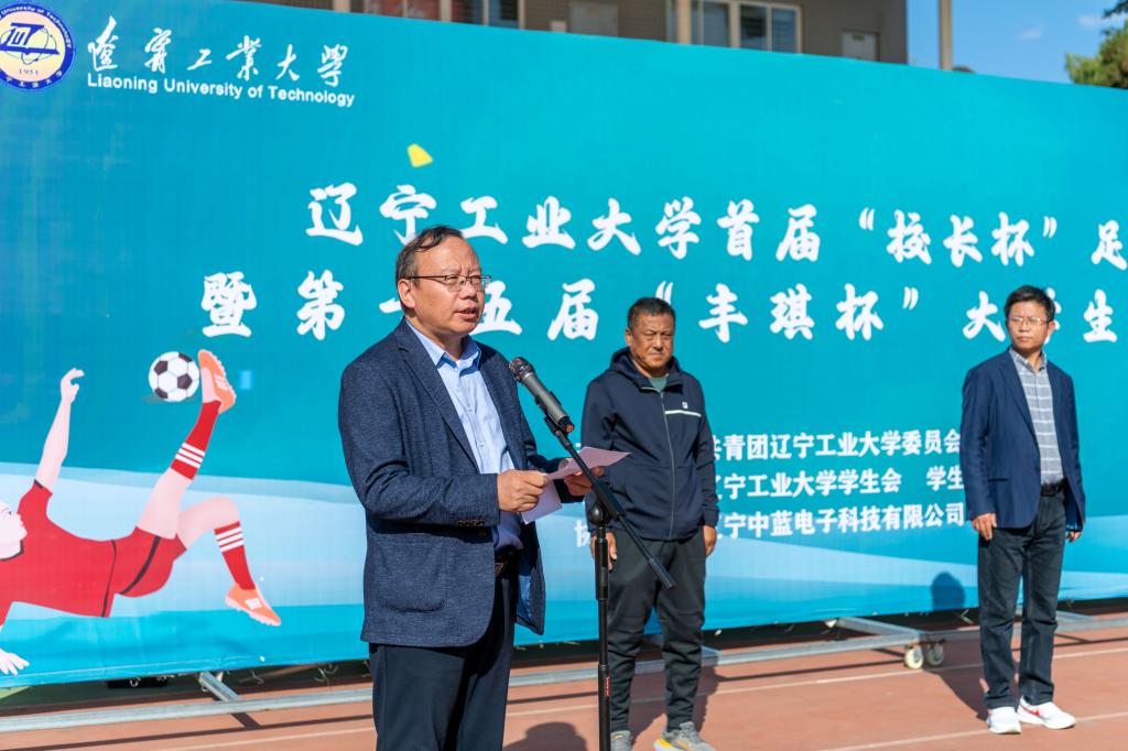 10月18日,辽宁工业大学首届“校长杯”暨第十五届“丰琪杯”大学生足球赛在体育场开幕。校党委副书记张启俭,团委、体育部、国际教育学院负责人,竞赛裁判员、各学院团委书记及参赛运动员参加活动。开幕式由校团委副书记李苓主持。