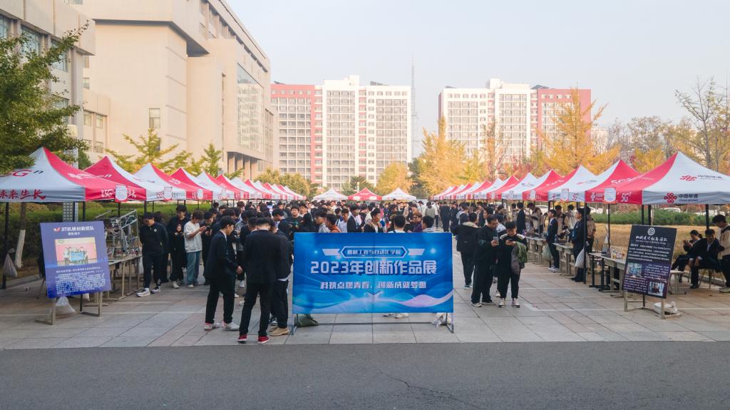 10月25日,机械工程与自动化学院在图书馆前举办了以“科技点燃青春,创新成就梦想”为主题的创新作品展。