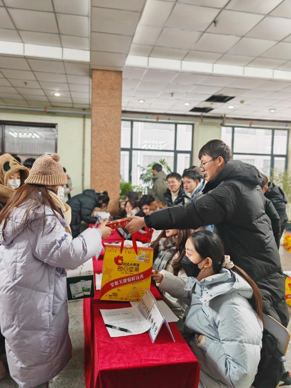 活动伊始,学生工作处处长张钦华为252名家庭经济困难的2024届考研学子送上考前祝福寄语,并与在场老师共同为学生们发放考前爱心加油大礼包。礼包中的咖啡、牛奶和坚果寓意着:一战成硕,“啡”你莫属;“牛”气冲天,皆得所愿;研途“坚”定,终得硕“果”。老师们一边为学生们送上满怀祝福的礼包,一边嘱咐同学们在考前关键时期要调整好心态,保证身体健康,以饱满的精神状态迎接考试。考研学子收到这份惊喜满满的礼包后非常感动,纷纷表示,学校对学生的真挚关怀让他们更有信心面对未来的挑战,增强了备战考研的动力和信心。