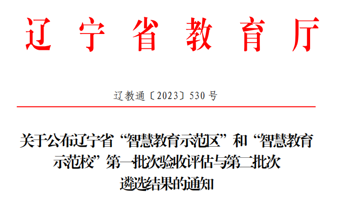 近日,辽宁省教育厅公布辽宁省“智慧教育示范区”和“智慧教育示范校”第一批次验收评估与第二批次遴选结果,我校成功入选辽宁省第二批“智慧教育示范校”创建单位。