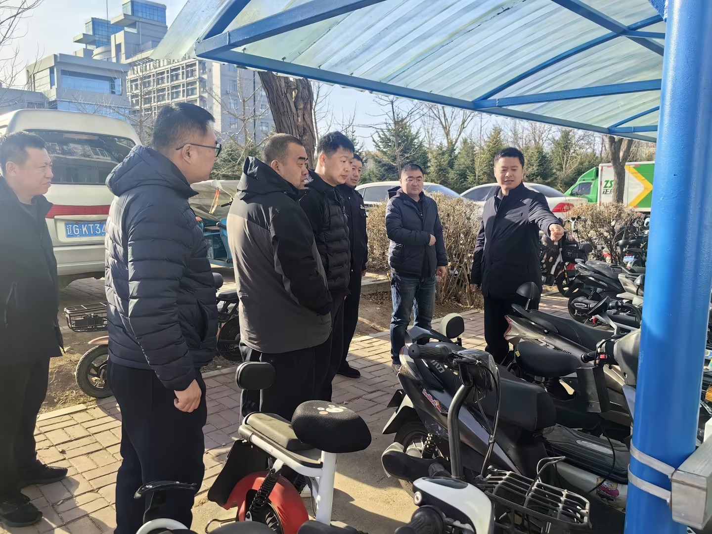 刘艳军对学校南门、西门、北门的保安室、安保配备、消防器材、设施设备进行了检查,详细了解了校园安保力量布置、值班人员情况。他要求放假期间要保证校园进出口的秩序和安全管理,要时刻绷紧“安全弦”,提高警惕,守好校园安全的第一道防线。刘艳军一行对西门电动自行车充电区、图书馆前、第九教学楼北侧广场等电动自行车集中停放区域进行了巡查,并要求对电动自行车充电安全、停放等进一步加强规范,消除安全隐患,营造平安和谐的校园环境。(王晓丽 文/摄影)