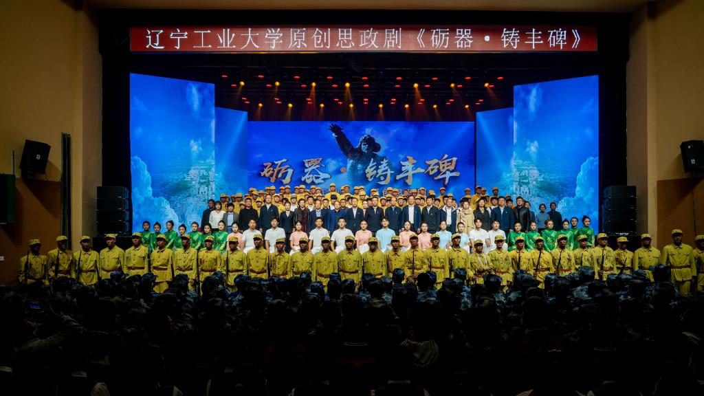 《砺器·铸丰碑》以辽沈战役为故事主线,将“三个一”的故事和“三种精神”有机融入其中,通过《3005次列车》《浴血配水池》《人民的苹果》《梁士英》四幕,生动讲述了辽宁工业大学和英雄城市锦州血脉相连的故事。近年来,学校充分发挥红色资源育人功能,以打造原创文化精品为目标,持续推进《砺器·铸丰碑》传承发展,不断丰富故事场景、情节、角色等元素,推动思政剧内容创新,通过传、帮、带作用完成演职人员更替,推动思政剧人员更新,融入信息技术元素营造立体化舞台,推动思政剧效果出新。
