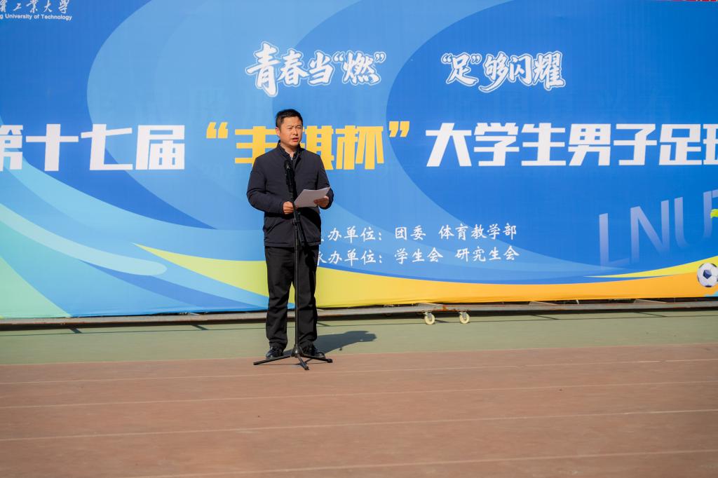 校党委副书记刘艳军为揭幕战开球,并寄语全体参赛运动员:要擦亮我校“丰琪杯”高品质赛事品牌,共享足球魅力,激扬青春风采,更要将赛场的激情与韧劲、拼搏与协作转化为学习科研中的探索与审慎、专注与坚持,充分展现辽工大青年阳光向上的精神面貌,为学校的高质量发展贡献青春力量。