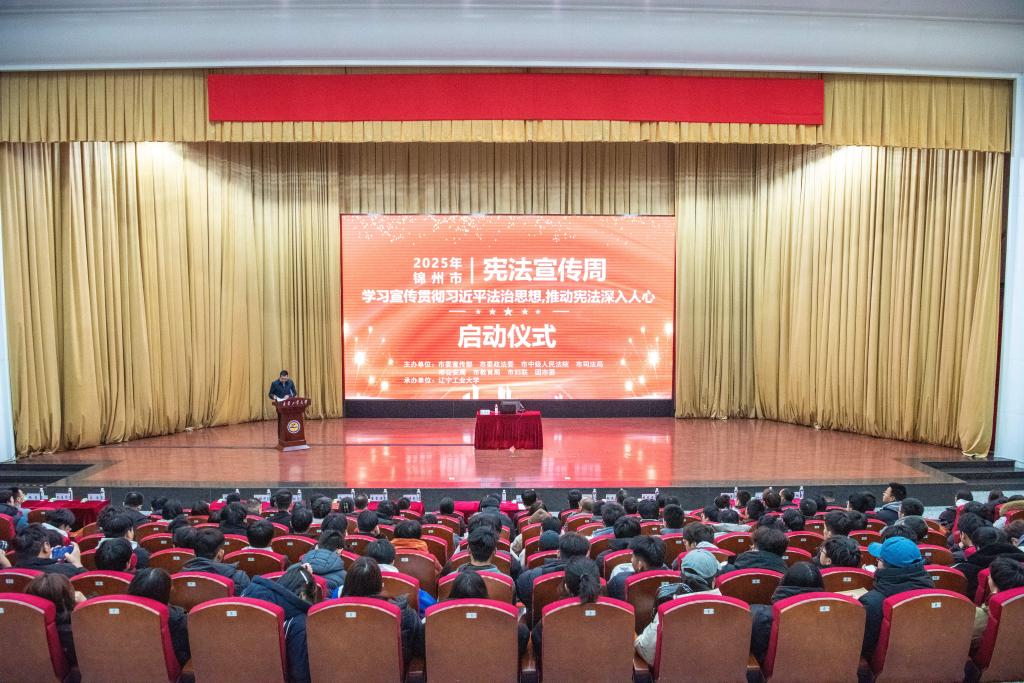 为深入贯彻落实党的二十届四中全会精神和习近平法治思想,迎接全国第十二个国家宪法日和第八个“宪法宣传周”,12月1日,由中共锦州市委宣传部、锦州市司法局主办的2025年“宪法宣传周”启动仪式暨“宪法进高校”活动在我校举行。校党委副书记、校长张启俭,锦州市司法局党组书记、局长李雅亮,市委宣传部、市委政法委、市法学会、市中级人民法院、市公安局、市教育局、市妇联、团市委等单位领导出席活动。学校相关部门负责人及师生代表共500余人参加此次活动。