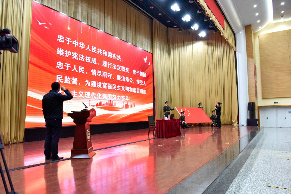 启动仪式在庄严的宪法宣誓中开始,全体人员庄严肃立,高举右拳,面向国旗,齐诵誓词。