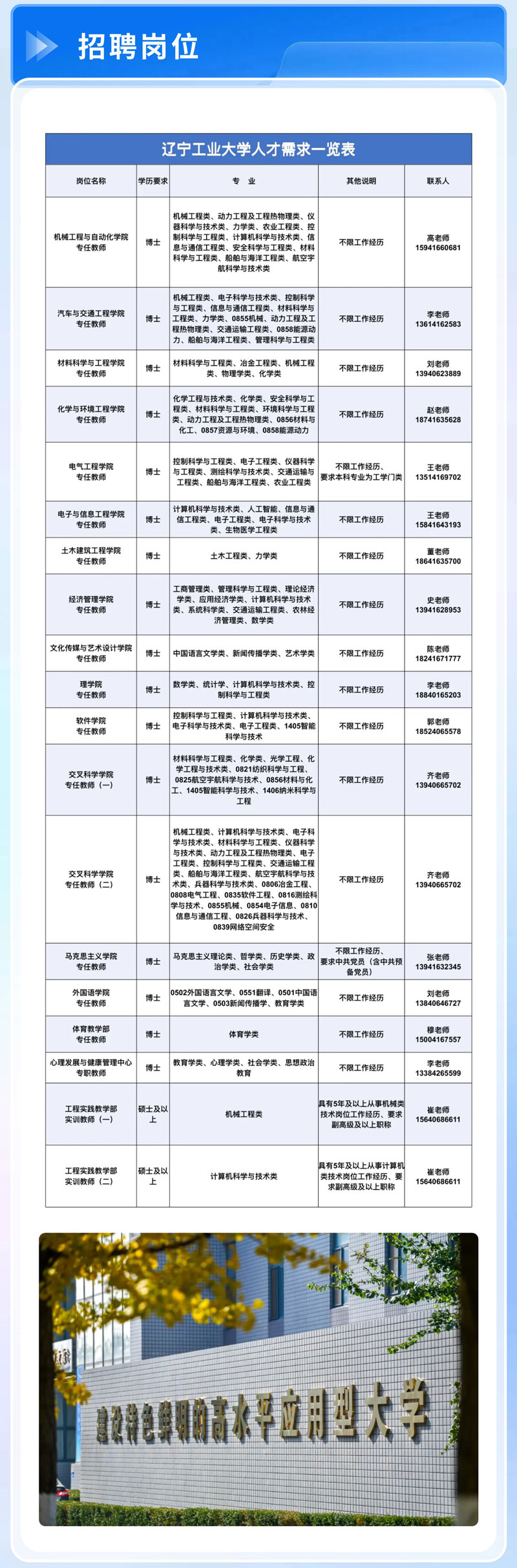辽宁工业大学公开招聘高层次和急需紧缺人才