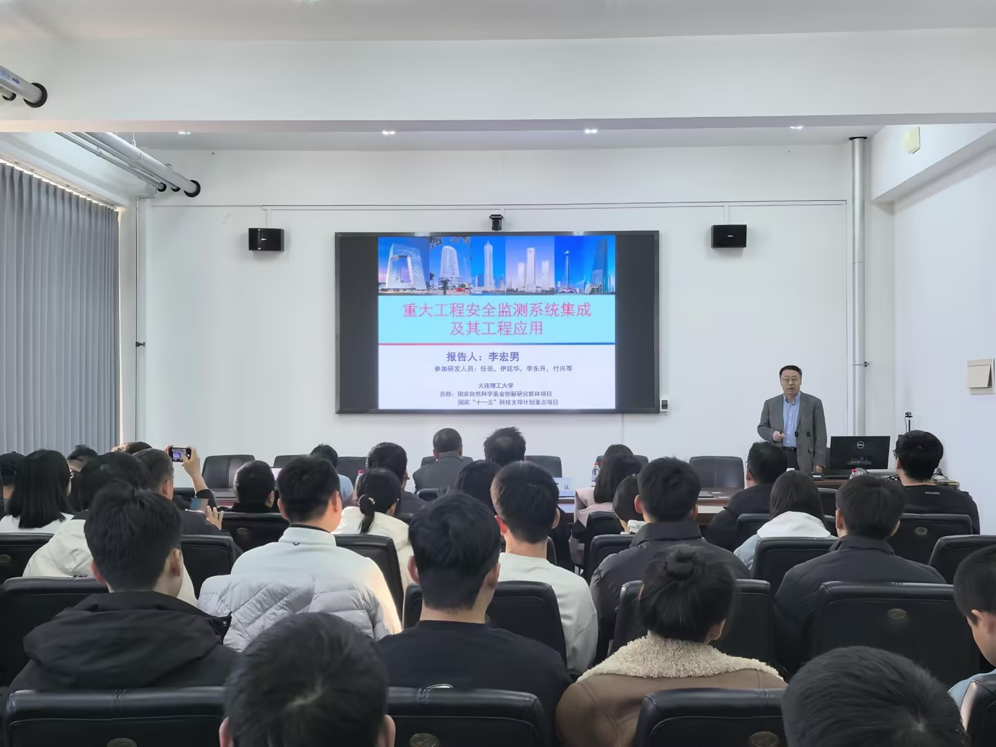 大连理工大学李宏男教授,教育部长江学者特聘教授、国家杰出青年科学基金获得者,欧盟科学院院士,俄罗斯工程院外籍院士,长期深耕工程结构抗震与健康监测。他以“重大工程安全监测系统集成及其工程应用”为题作学术报告。报告从工程结构灾害问题切入,阐述了结构健康监测技术的重要性,介绍了团队在传感器、数据设备、软件研发及工程应用等方面取得的成果,并展望了土木工程领域未来发展趋势。